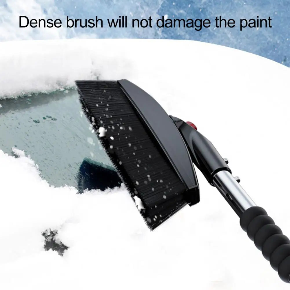 Usando um design elástico e alça estendida, a escova para neve raspa facilmente a neve no meio do pára-brisa. Além disso, ele usa uma pá de gelo giratória e um design de guiador, que é muito flexível e conveniente para remover neve.